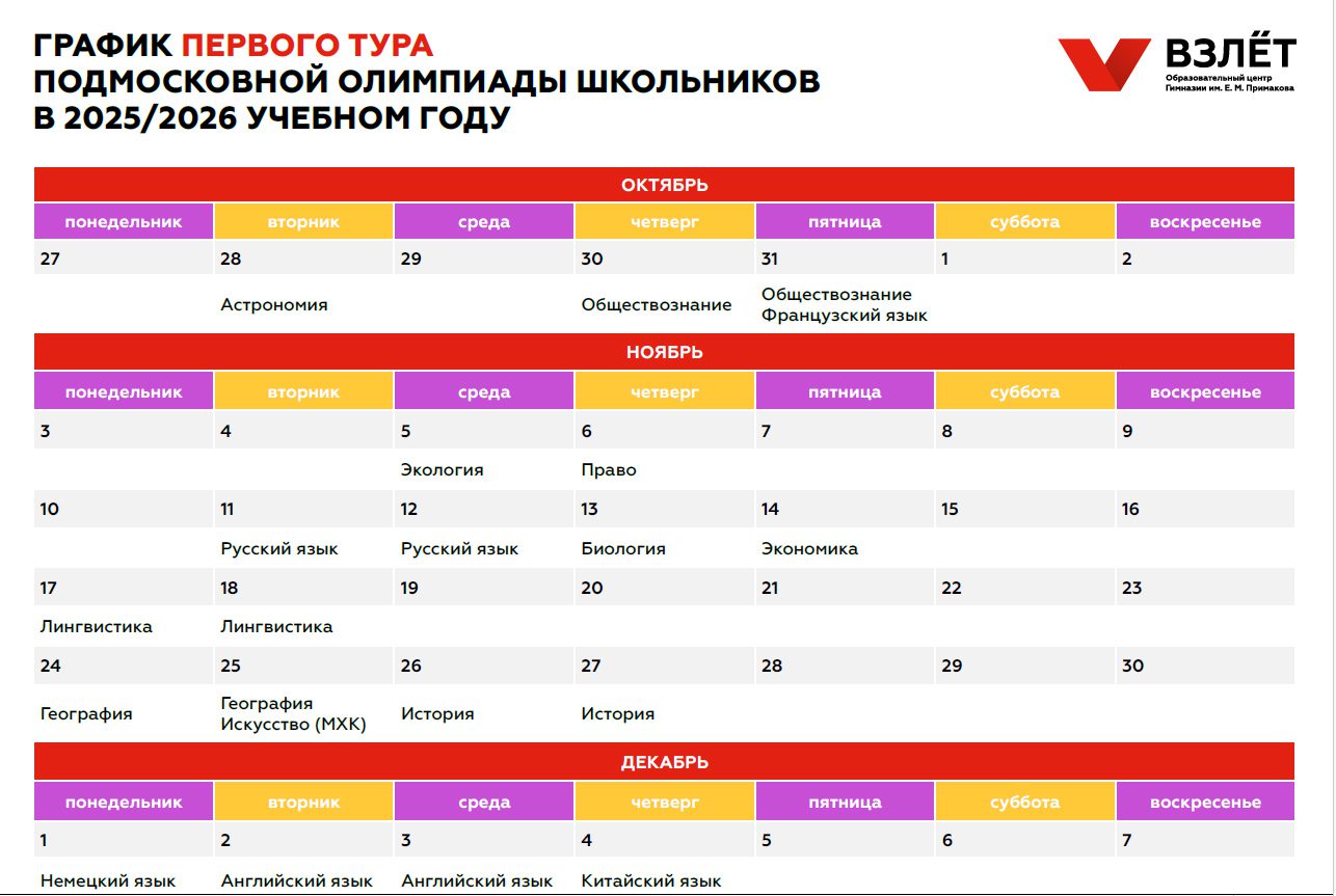 27 октября 2025г. стартует Подмосковная олимпиада школьников