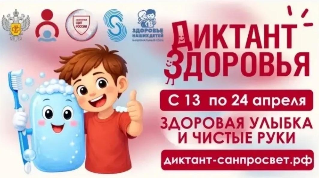 Федеральная служба по надзору в сфере защиты прав потребителей и благополучия человека запускает Всероссийский специальный проект «Диктант здоровья». Инициатива реализуется в рамках коммуникационной стратегии «Санпросвет» федерального проекта «Санитарный щит страны – безопасность для здоровья».Проект направлен на повышение уровня знаний населения о профилактике заболеваний и формирование базовых навыков, необходимых для сохранения здоровья. Принять участие в «Диктанте здоровья» могут все желающие в возрасте от 7 лет.