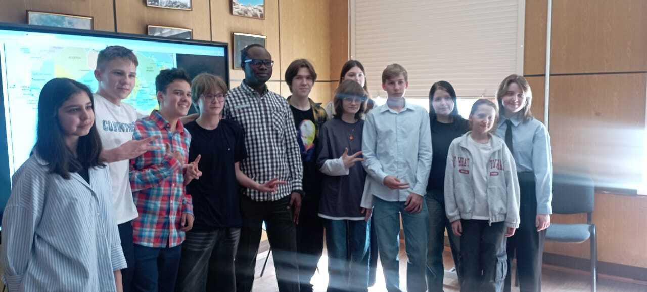 У ребят была уникальная возможность пообщаться с координатором нигерийской диаспоры в Москве и управляющим культурным центром Содружества африканских стран Давидом Осемудиаменом и поближе познакомиться с культурой и географией африканских стран.