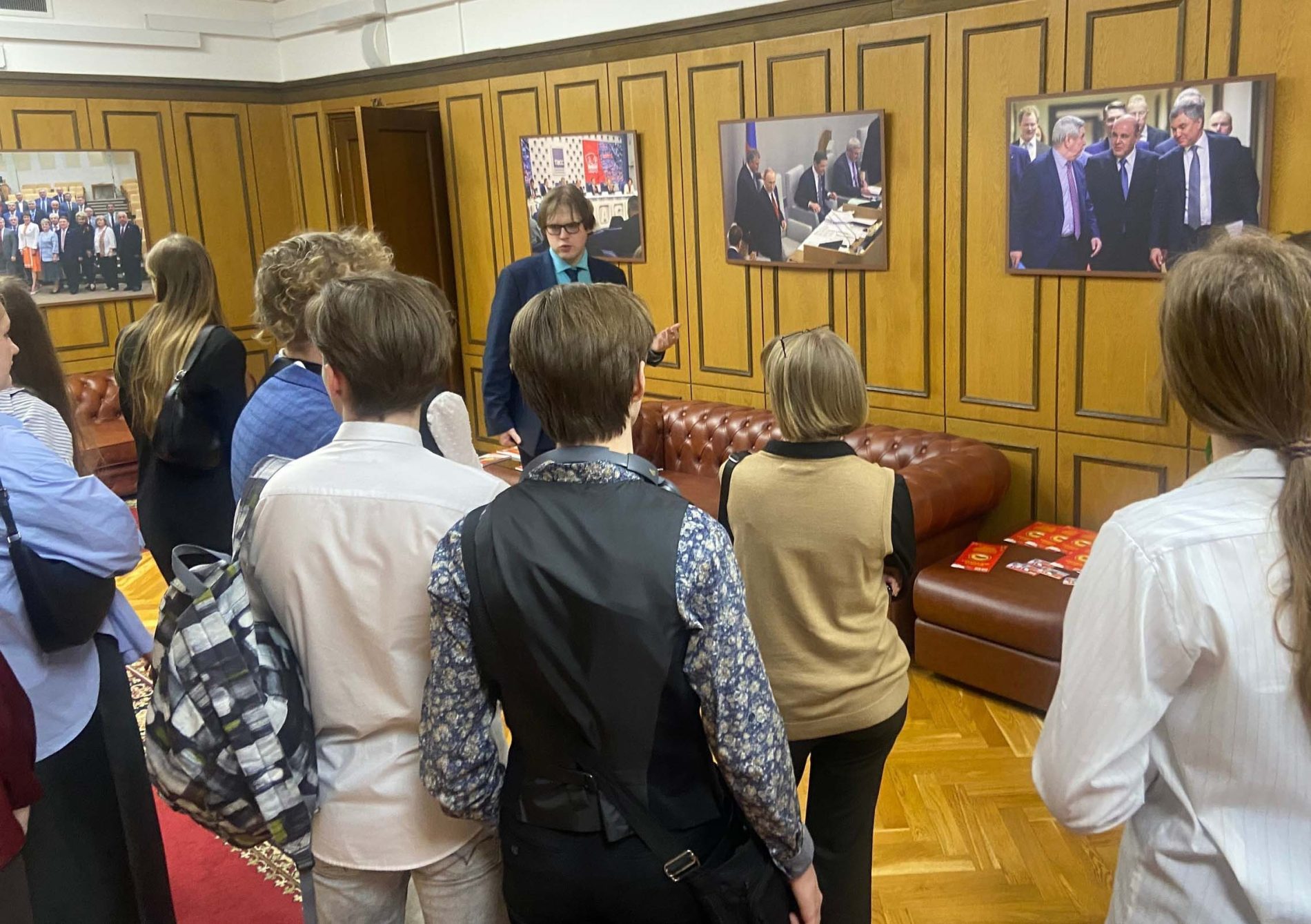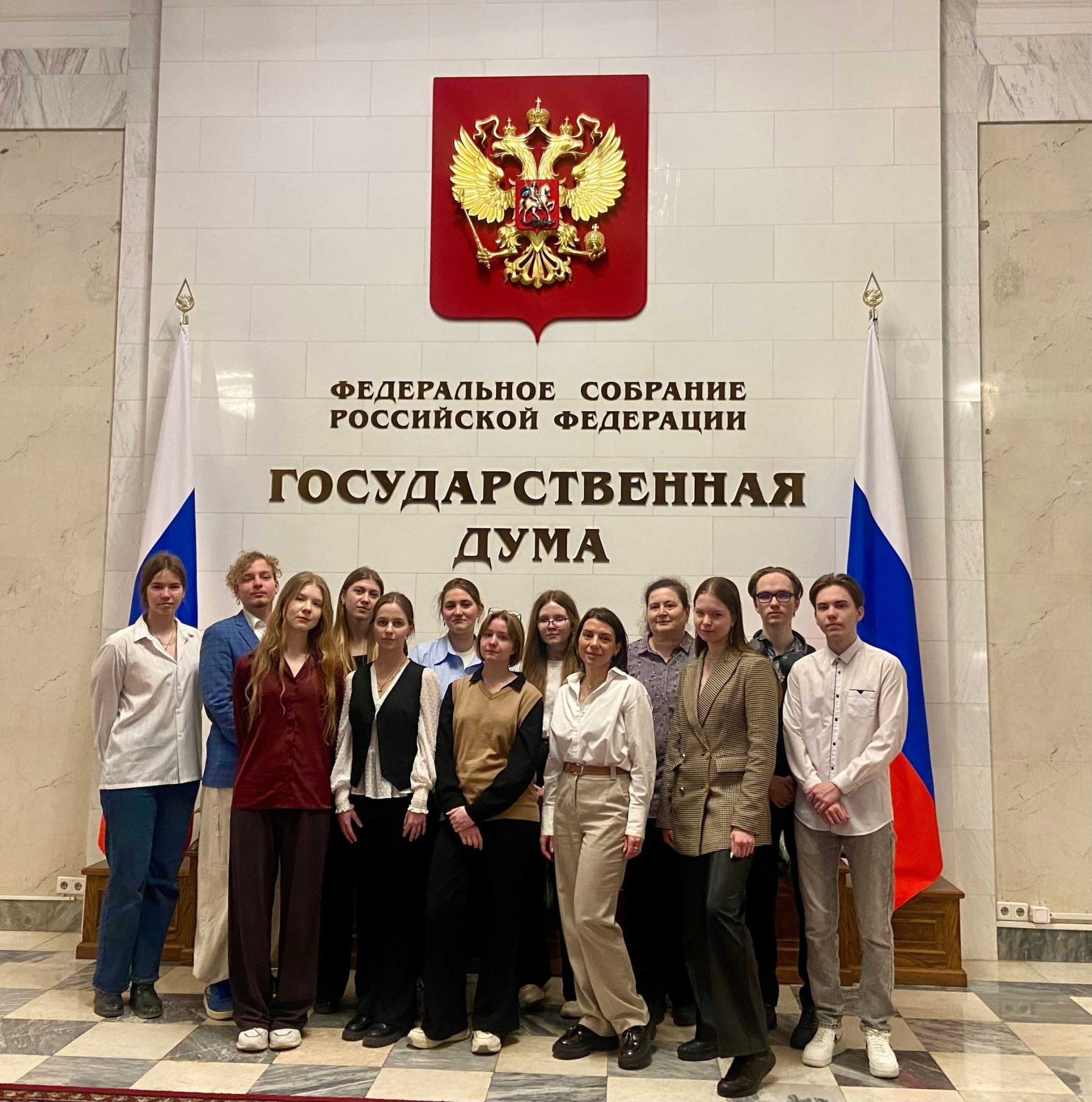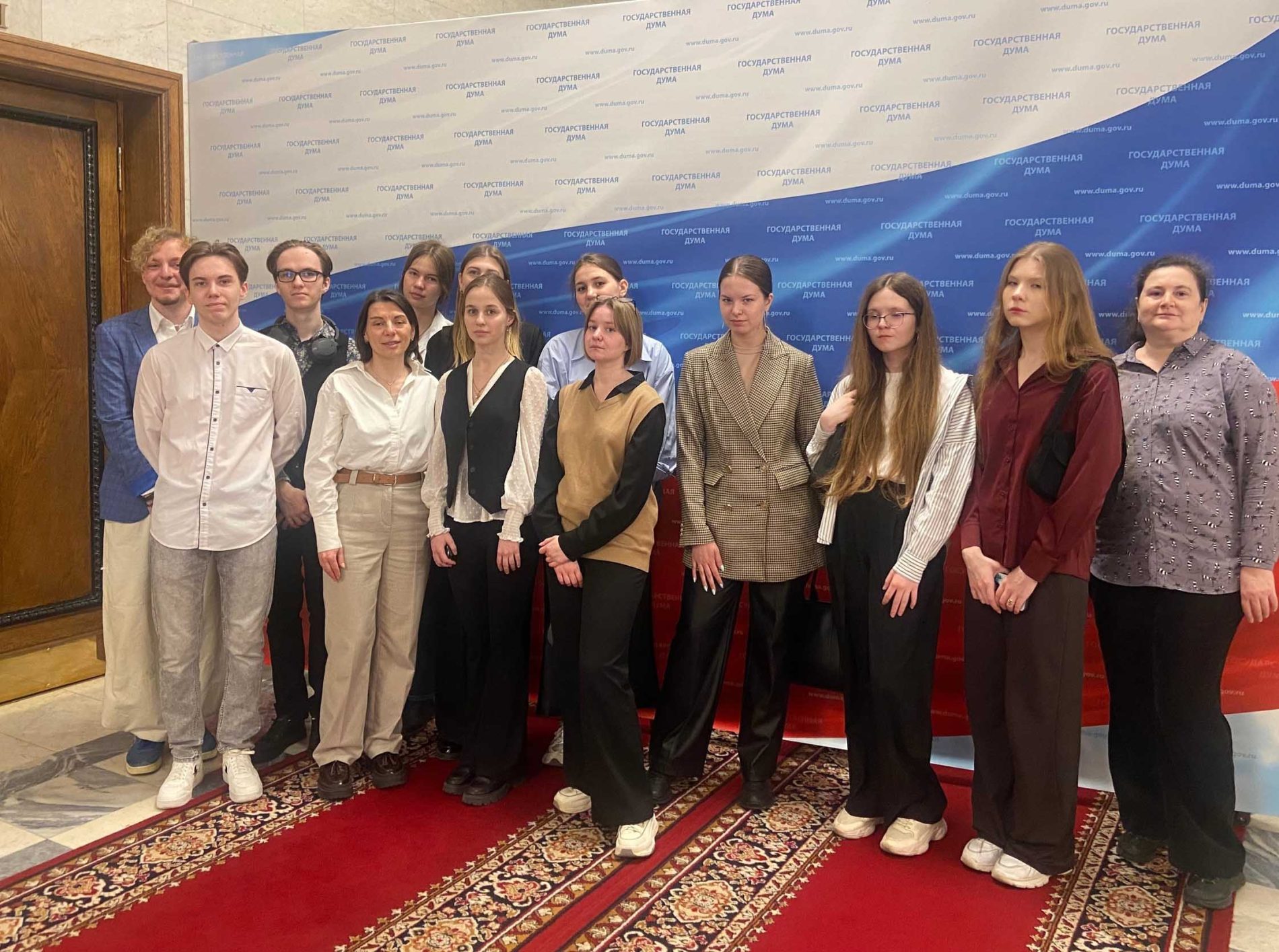 16 апреля 2025 года ученики элективного курса «Обществознание: актуальные проблемы» вместе с учителем Хвостовой Т.В. и классным руководителем Буровой О.Б. побывали на экскурсии в Государственной Думе РФ. Гимназисты познакомились с историей российского парламентаризма и побывали в кабинетах думских фракций. Многие выпускники гимназии связывают свою карьеру с государственной службой.