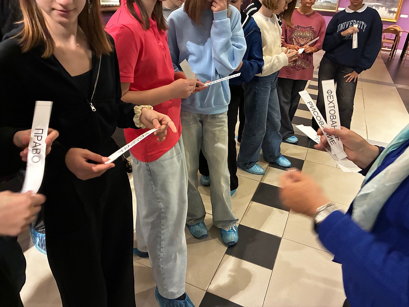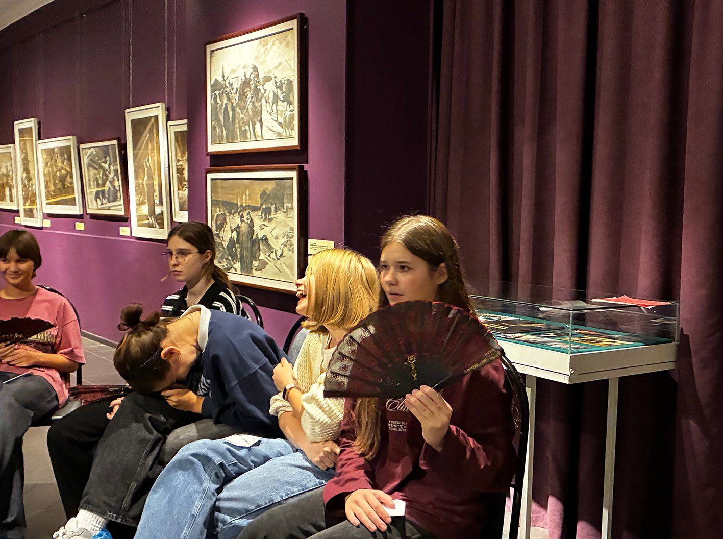 Вот и нынешние семиклассники вместе с классным руководителем Буровой О.Б. и учителем русского языка и литературы Сочневой Л.А. побывали на таком уроке на этой неделе. В залах экспозиции «Любовью и единением спасемся» ребята узнали, почему Сергий Радонежский — покровитель всех, кто учится. В библиотеке музея гимназисты справились с викториной, а в Главном корпусе среди картин «Осеннего салона» узнали о распорядке дня лицеистов и секретном языке веера на балах. Ну и, конечно, испачкали пальцы чернилами!