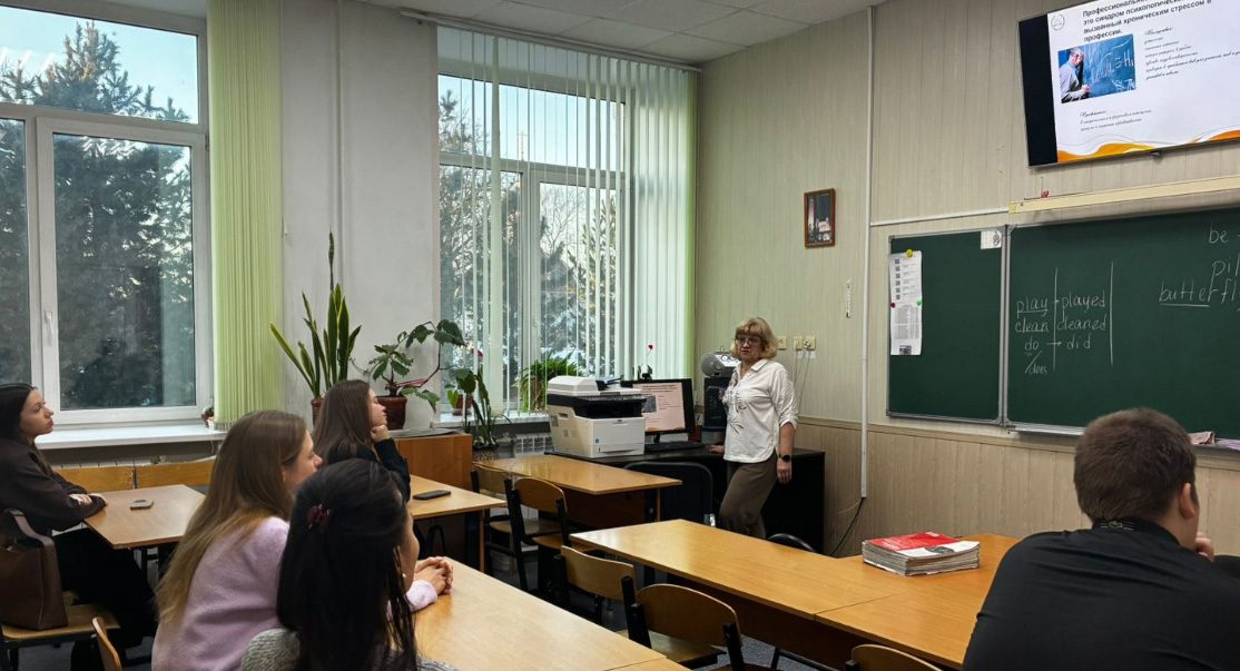 15 декабря 2025г. в гимназии состоялось очередное занятие Школы молодого учителя по теме «Психолого-педагогическая культура педагога: секреты эффективной коммуникации и саморегуляции. Профилактика эмоционального выгорания». Ведущие — директор гимназии, кандидат психологических наук Филимонова О.Г., заместитель директора, педагог-психолог Бурова О.Б. На занятии молодые учителя не только повторили теорию, но и приняли участие в тренинге по формированию стессоустойчивости.