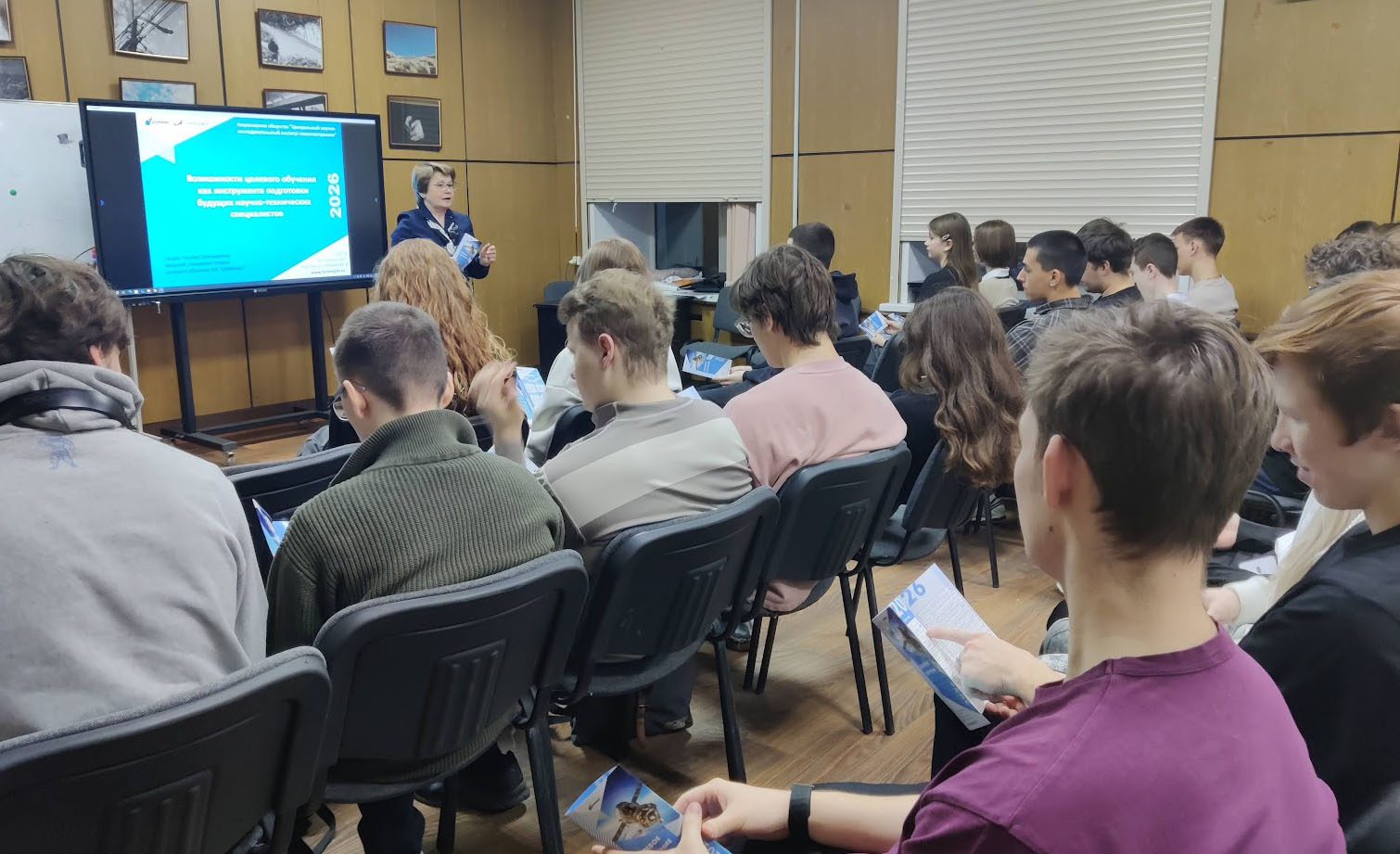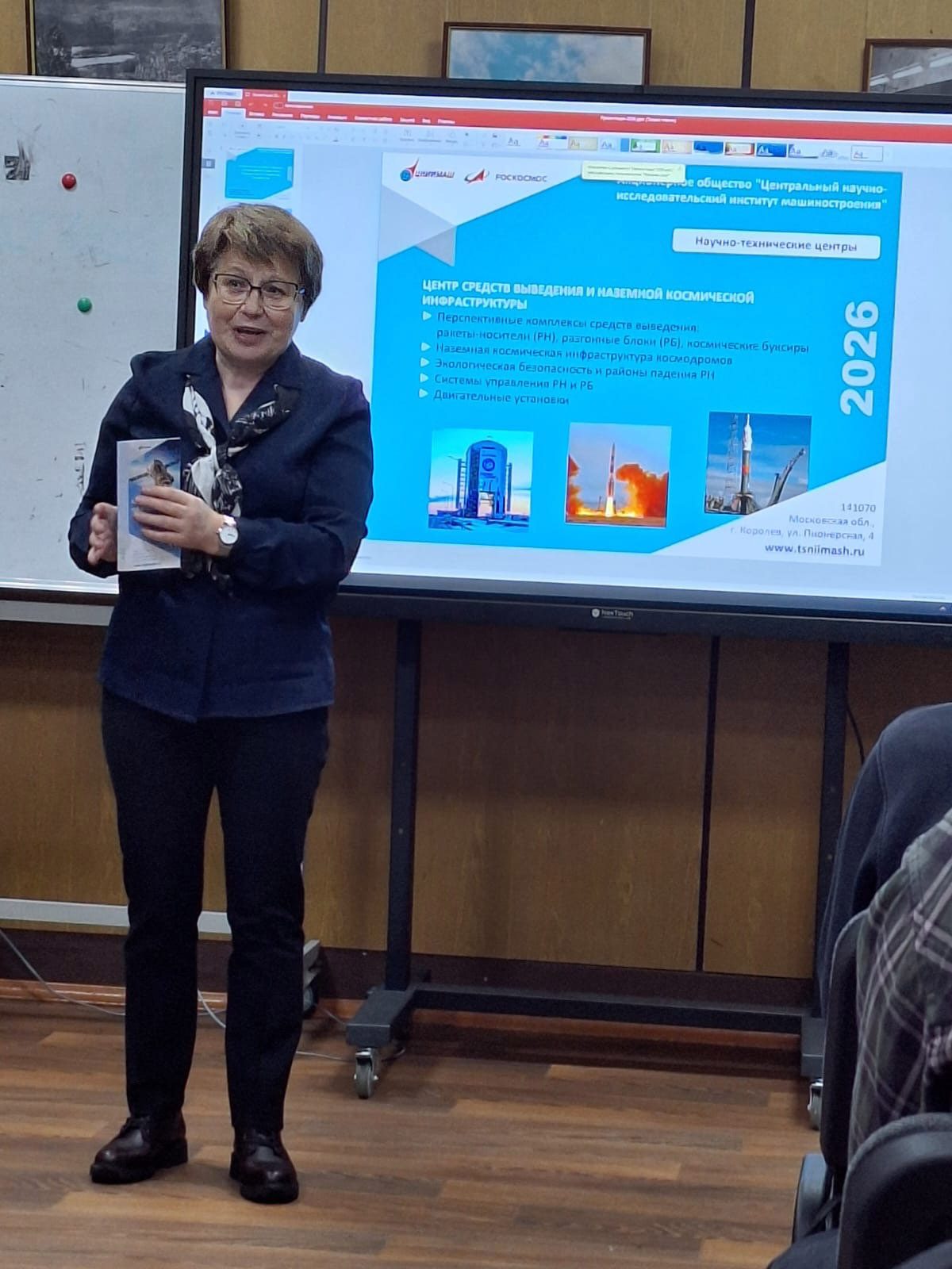 11 декабря у ребят из 10-х и 11-х классов, выбирающих техническое направление, состоялась профориентационная встреча с Ведущим специалистом отдела целевого обучения и развития персонала АО «ЦНИИмаш» (г. Королев), Татьяной Геннадьевной Гандзя. Ребятам рассказали о направлениях деятельности Центрального научно-исследовательского института машиностроения, о возможности поступления на целевые места.