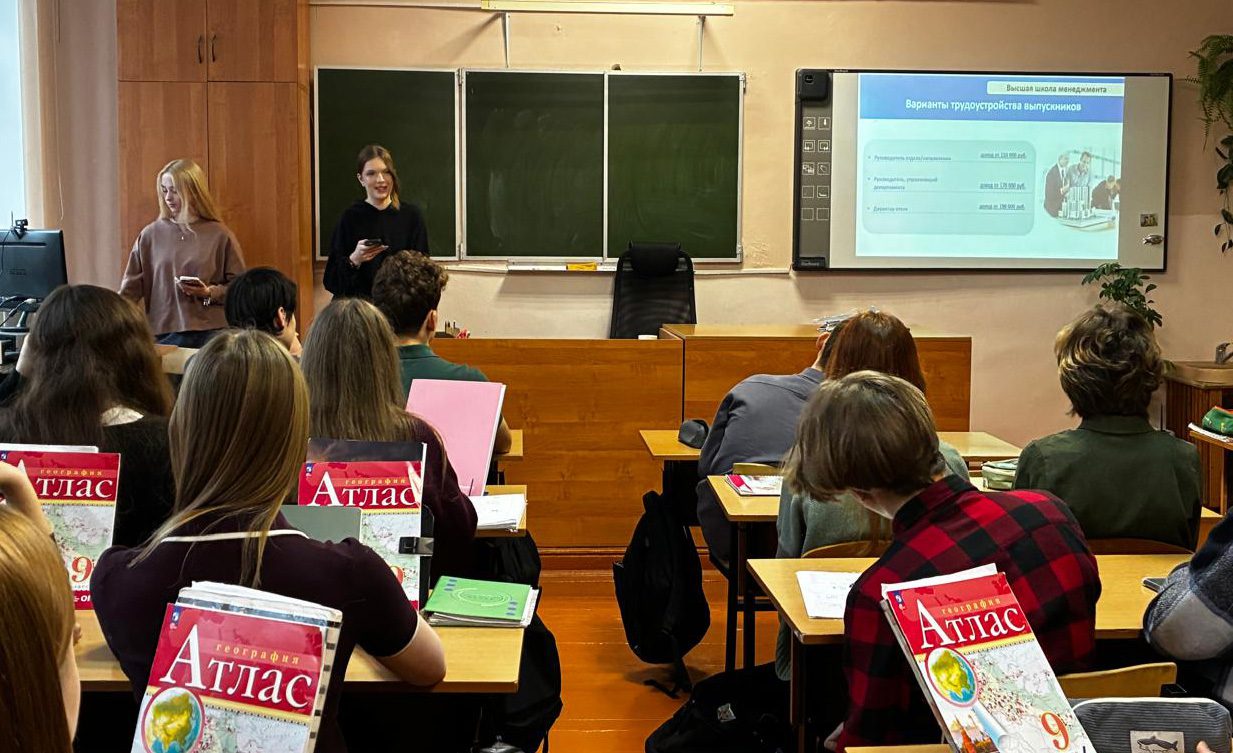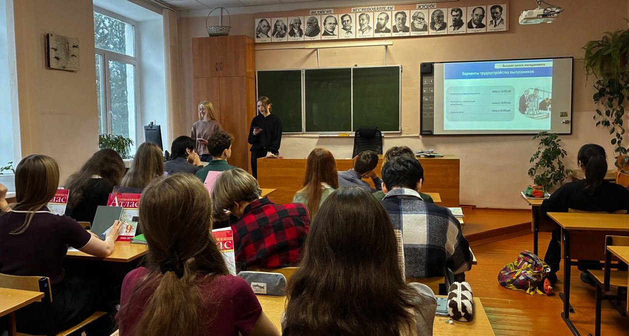 В начале декабря 2025г. в гимназию приезжали студенты РЭУ им.Г.В.Плеханова, наш выпускница Пыртикова Дарья и ее однокурсница. Они с увлечением рассказывали гимназистам о своем вузе.