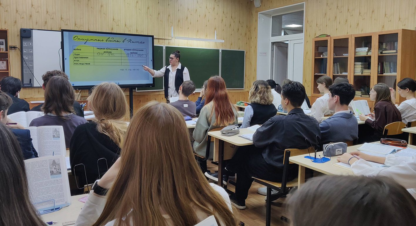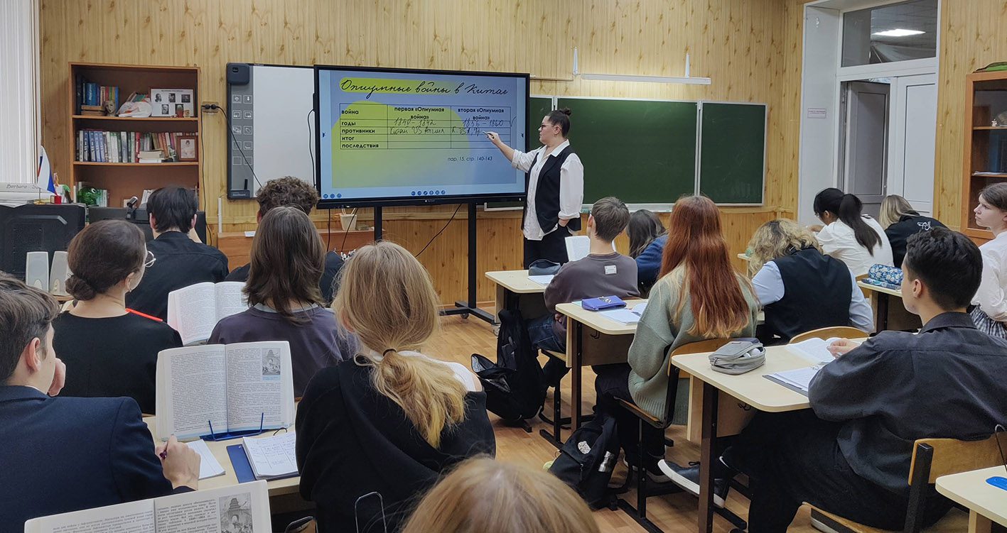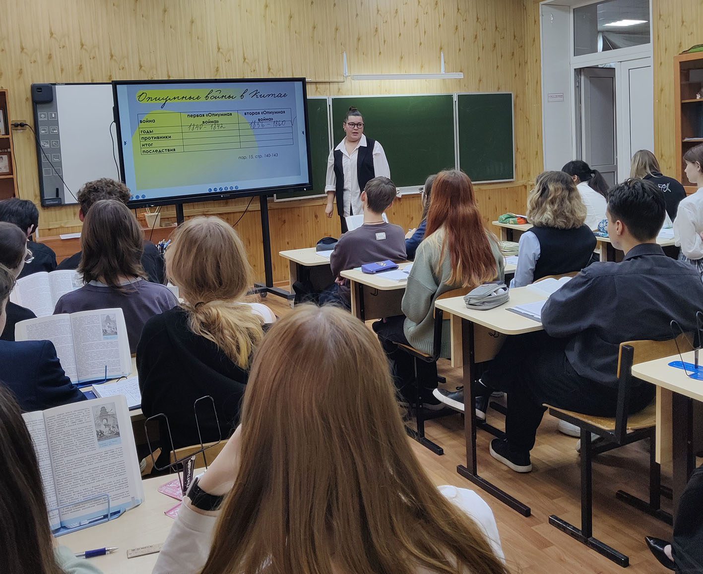 24 октября 2025г. в гимназии состоялся открытый урок истории по теме «Опиумные войны: индустриальные державы в Китае», 9 класс. Урок проводила учитель истории Сычева Дарья Викторовна. На уроке девятиклассники активно отвечали на поставленные вопросы, самостоятельно работали с учебником по группам, итоги анализа были занесены в общую таблицу на интерактивной панели.